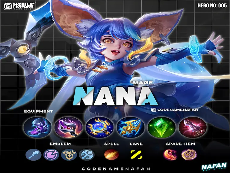 Nana kini lebih fleksibel untuk dimainkan di mid lane maupun support roam. Berikut tips agar Nana kamu selalu memberi kontribusi besar di setiap pertandingan: